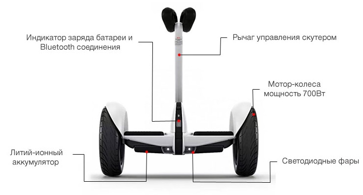 Технические характеристики мини-сигвей Xiaomi Ninebot Mini: