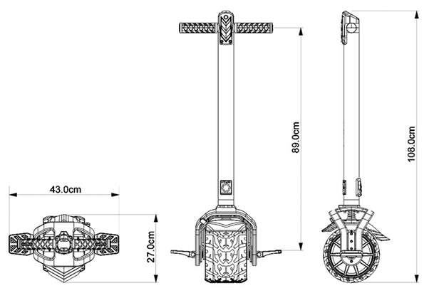 Основа-колесо Kiwano KO1 оснащено стояночным тормозом в виде скобы-подставки, которая позволяет парковать моноколесо в положении ручкой вверх. Подставка легко и удобно выдвигается даже ногой.